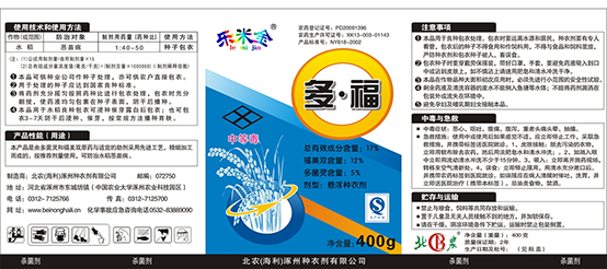 北農(nóng)(海利)涿州種衣劑有限公司是由中國農(nóng)業(yè)大學(xué)與湖南海利化工股份有限公司于19984月合資成立的有限責(zé)任公司。公司主要從事懸浮種衣劑、干粉種衣劑、懸浮劑、可濕性粉劑、水乳劑等農(nóng)藥的研發(fā)、生產(chǎn)和銷售。